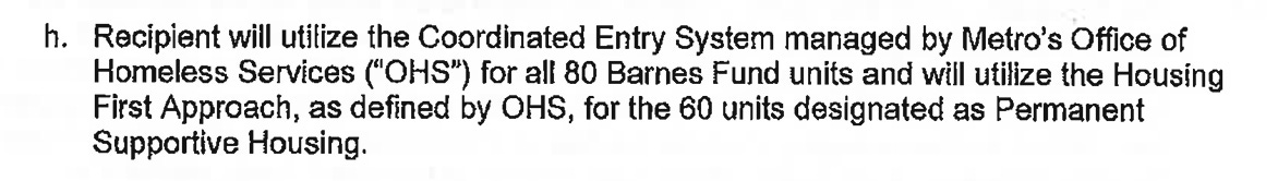 My review of the contract in question, worth $7.5M indicates that indeed, the developer is required to only use the 80 units funded through The Barnes Fund to house referrals from OHS. But there is not, if we were to be precise, an obligation for OHS to actually provide these referrals.